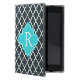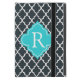 Elegant charcoal, aqua blue quatrefoil monogram cover for iPad mini
