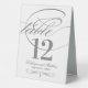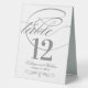 Elegant Charcoal Gray Calligraphy Script Wedding Table Tent