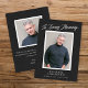 This elegant memorial photo announcement features a faux charcoal grey fabric background, a single vertical photo, and simple yet elegant typography. One the back, the dark grey background is repeated with a single, square photo, and text to write a personal message. You can remove the text and photo on the back if desired, just clicking on "edit with design tool".
