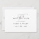 This elegant charm black and white wedding save the date is perfect for a simple wedding. The modern minimalist design features timeless black and white romantic calligraphy with bohemian fairytale style.