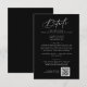 This elegant charm dark black wedding details card is perfect for a simple wedding. The modern minimalist design features timeless romantic calligraphy on a sophisticated dark black background with bohemian fairytale style.