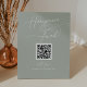 This elegant charm green QR code honeymoon fund sign is perfect for a simple wedding or bridal shower. The modern minimalist design features timeless pastel sage green and romantic calligraphy with bohemian fairytale style.