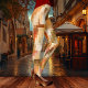 The dainty interlinked rosette design at the waist is truly unique. The poly-spandex makes for a nice fit and available in sizes 0-16. The printing is vibrant and eye-catching.