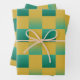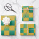 Elegant checkered pattern in green and gold wrapping paper sheets