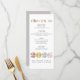 Add a touch of modern elegance to this years New Years celebration with this menu card. The simple design features cheers to 2024 in a modern typography in a palette of gold and silver. The template is created for a four course meal. Personalize with your family name. The reverse side is in a coordinating silver color.