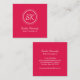 Elegant Cherry Red Script Professional Monogram Square Business Card