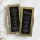 This elegant wedding program boasts a modern and luxurious design with chic black and gold glitter accents. Featuring simple calligraphy script, it blends sophistication with a touch of glamour, making it a stunning keepsake for your special day.