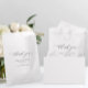With its chic calligraphy script, the word "Thank You" graces the front of the bag, radiating timeless charm and appreciation. The elegant design creates a striking contrast against the black and white backdrop, making it a stunning addition to your wedding decor.