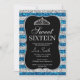 Elegant Chic Blue Silver Glitter Tiara Sweet 16 Invitation