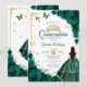 Elegant Chic Emerald Green Roses Gold Quinceanera Invitation