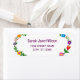 Stylish custom return address label for one person (can be customized for a family as well), with a floral motif illustration around the left and right edges, and with elegant, contemporary handwritten script for the person's name or family name and a modern all caps font for the address.