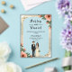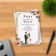 This elegant watercolor floral wedding acrylic invitation is perfect for a modern wedding. The romantic design features a sleek watercolor floral frame with a bride and groom illustration and black calligraphy on a white background.
