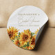 Vibrant yellow sunflower floral blooms bouquet border with greenery foliage making elegant boho chic spring summer fall garden bridal shower personalized stickers with whimsical elegant modern hand lettered calligraphy script over a white background.