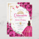 Elegant Chic Fuchsia Pink Roses Gold Quinceanera Invitation