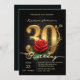 Elegant Chic Gilded 30th with Red Rose Bloom Invitation