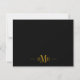 An elegant modern trendy style gold 3 initial monogram note card in gold typography on black. White on the back.
