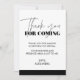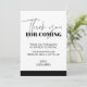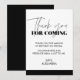 🌟🖋️ Thank you notes deserve a touch of style, and the Elegant Chic Black White Thank You Cards deliver just that. Featuring a sleek black background on the front, three‑quarters of the card is crisp white, while the bottom quarter remains deep black for a striking contrast. At the top, a bold “Thank you for coming” headline in black sets a warm, appreciative tone. Beneath it, a heartfelt message followed by “Love + [Name]” appears in the same elegant black script, creating a cohesive look that feels both chic and elegant. Perfect for a woman, a man, or any unisex celebration, these cards turn a simple thank‑you into a memorable keepsake that guests will cherish. 🌟🖋️