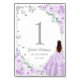Elegant Chic Lilac Purple Roses Silver Quinceanera Table Number