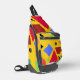 Elegant gemetric, graphic artwork in vibrant background, yellow, burgundy, blue and so on.