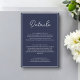 This elegant navy blue wedding details enclosure card is perfect for a modern wedding. the simple design features elegant white calligraphy on a navy blue background.