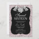 Elegant Chic Pink Glitter Silver Rose Sweet 16 Invitation