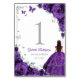 Elegant Chic Purple Roses Silver Quinceanera Table Number