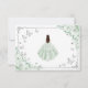 Sage green silver and white Quinceanera RSVP reply card. Features brunette girl in ball gown dress, script font, silver butterflies, roses and tiara. Perfect for an elegant princess style glam celebration. Personalize with your own details.