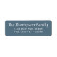 Chic, simple address return label with a trendy, modern white script font on a gray teal blue background, to embellish your mail and envelopes with. Customize or personalize with your personal or family name and address.