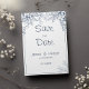 This elegant luxury white and gray blue elegant floral wedding Save the Dates invitation. These classy white and blue invitations are perfect for any classy and sophisticated glam girl. This design is perfect for a trendy and stylish party event. Design with your own message and information. All designs are printed.