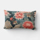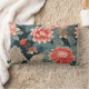 Elegant Chinoiserie Teal Peach Florals Lumbar Pillow