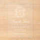 Announce your upcoming wedding in timeless elegance with our Elegant Chinoiserie Save the Date. This sophisticated design features your monogram initials encircled by a beautifully detailed crest of white chinoiserie and baroque motifs, set against a frosted or transparent acrylic background. "Save the Date" is showcased in a graceful white calligraphy script, with your wedding details elegantly displayed below. Perfect for couples seeking a classic and refined way to share their special day with loved ones.