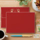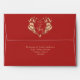 Modern, elegant, stylish, chic red Christmas envelope, with gold heart shape wreath, holiday wishes and return address. Peace, Love, Joy!