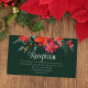 This beautiful holiday reception card features a gorgeous watercolor of red poinsettia flowers and pine leaves for Christmas. An elegant winter wedding event details card in dark hunter green. A festive celebration of love for the holidays. Personalize the back of this poinsettia floral response card with the couple's monogram initials.