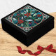 A gift box featuring a decorative ceramic tile with a Christmas design of seasonal leaves, red flowers and berries, with a faux metallic framed effect. With botanical charm inspired by the craft of traditional stained glass, this box makes a delightful festive accessory for the home.