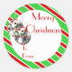 Festive, elegant and vibrant round stickers with the words, Merry Christmas surrounded by a red and green striped background and two FAUX sparkling christmas balls which have a celtic knot pattern on them. CUSTOMIZE IT - Personalize the wording and use them to decorate your paper products and presents this Xmas season. They are ideal for year end wishes to customers and clients too.