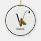 Elegant Christmas Holly Monogram Letter V Ceramic Ornament