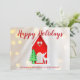 Happy Holidays from your custom real estate company. An elegant holiday card with beautiful red cursive typography written across a Christmas house photo and your personalized business name below. The perfect greeting card for a realty office.