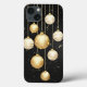 Elegant gold and white Christmas tree ornaments on a black background, the perfect way to show your holiday spirit on ANY STYLE cell phone case - just choose your model. MATCHING items in our store.