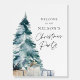 Elegant Family Christmas Party Welcome Sign featuring a watercolor Christmas tree. Most lettering is editable - click the "Customize Further" button to edit. Matching items in our Elegant Christmas Party Collection - Designed by Cava Party Design