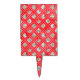 Show your holiday spirit with this elegant Christmas design cake topper. It has a pattern of elegant ornaments, ice skates, red ribbons, and polka dots on a red background.