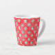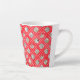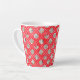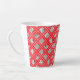 Show your holiday spirit with this elegant Christmas design mug. It has a pattern of elegant ornaments, ice skates, red ribbons, and polka dots on a red background.