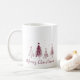 This festive elegant coffee mug features Christmas pine trees and a "Merry Christmas" script.
