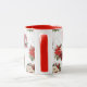 Elegant and chic seamless holiday floral pattern featuring bouquets of red and white poinsettias, holly and pine on a subtle gray and white damask pattern.