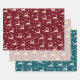 Elegant Christmas Reindeer Snowflake Pattern Wrapping Paper Sheets