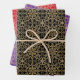This classic gift wrap is perfect for festive holidays and winter celebrations. Each set contains three sheets in matching designs with varying color backgrounds. The ornate geometric pattern features interconnected flowers, heart-shaped petals, and decorative snowflakes. Its vintage inspired, traditional design adds a touch of elegance to any gift! Printed colors: black, purple, red and a faux gold texture — you can also change the background colors by using the design editor tool. This wrapping paper is available with a matte or semi-glossy finish.