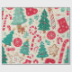 This Christmas wrapping paper pattern features classic holiday elements such as Christmas trees, candy canes, snowflakes, gingerbread cookies and ornaments. It is filled with reds, greens, golds, and whites, set against a warm light beige background, creating a cozy festive feel. This paper is perfect for wrapping gifts.