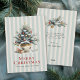 Send your Christmas holiday cards with ease this year with this simple, elegant card that has a decorated Christmas tree in a lovely porcelain pot with a few wrapped gifts under the tree. A vintage background of light aqua and ecru beige vertical stripes adds a stylish touch to this design. Classic serif fonts spell out "Merry Christmas from our house to yours". You can edit this text or leave as written. The back of the card has a sample holiday message along with your name(s). Edit the template and you have a custom Christmas card you'll be proud to send to friends, family and associates.