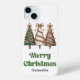 Stylish and festive phone case featuring watercolor Christmas trees with chic leopard accents. Designed in earthy green and gold tones, this minimalist case adds a modern holiday touch. Personalize with your custom name for a unique gift. Durable, eye-catching, and perfect for celebrating Christmas with elegant, playful style every day.
