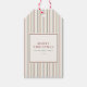 Create your own Christmas gift tags with family name and date on vintage style holiday color stripes background.