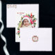Square holiday photo sticker design features your favorite photo framed by a beautiful Christmas foliage watercolor design of vibrant green leaves and red berries. Tip: crop your photo to a square format before uploading it to the site.